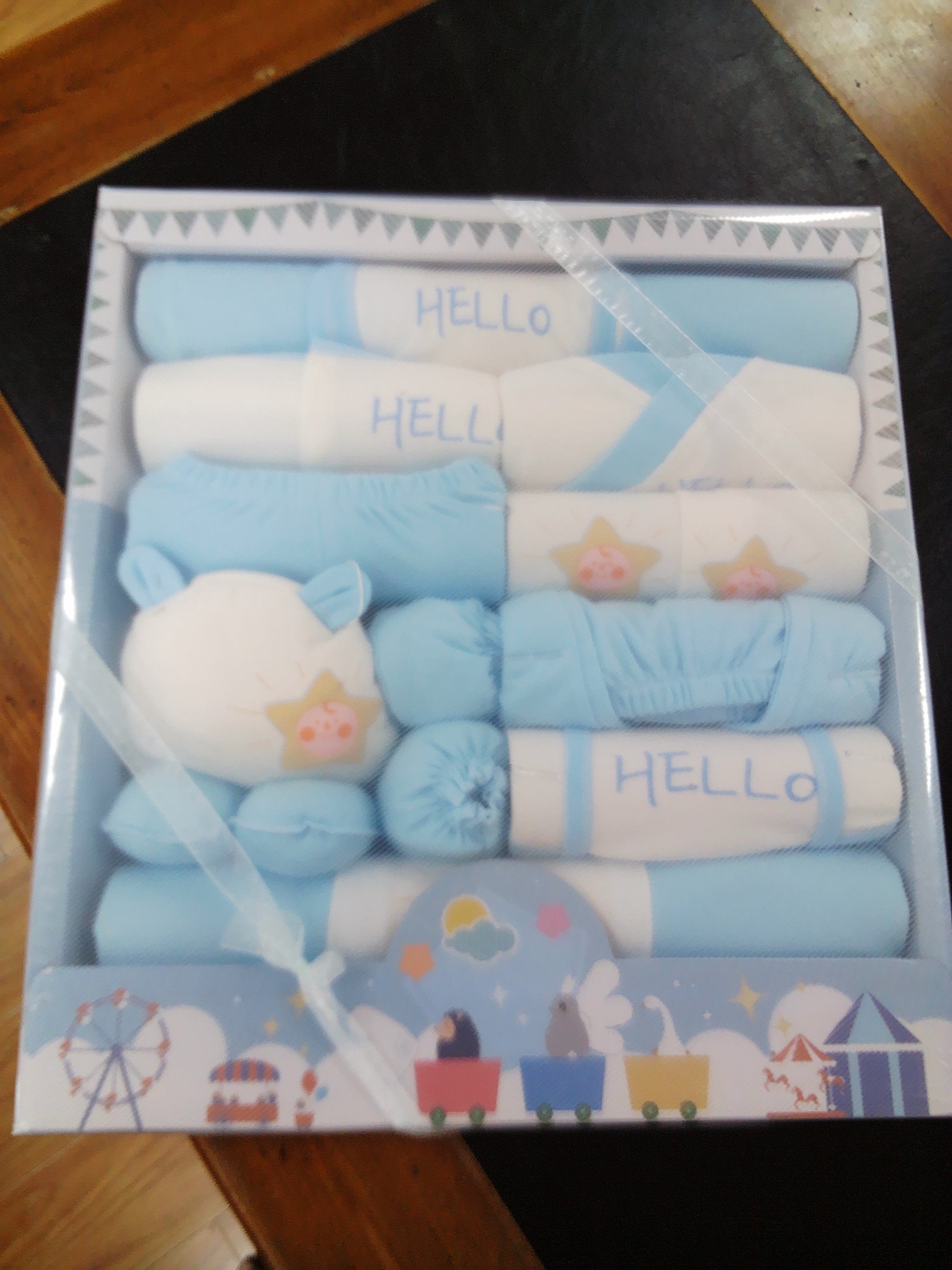 Blue Cotton Animal Printed Long Sleeved Newborn Clothing - Gift Box Set