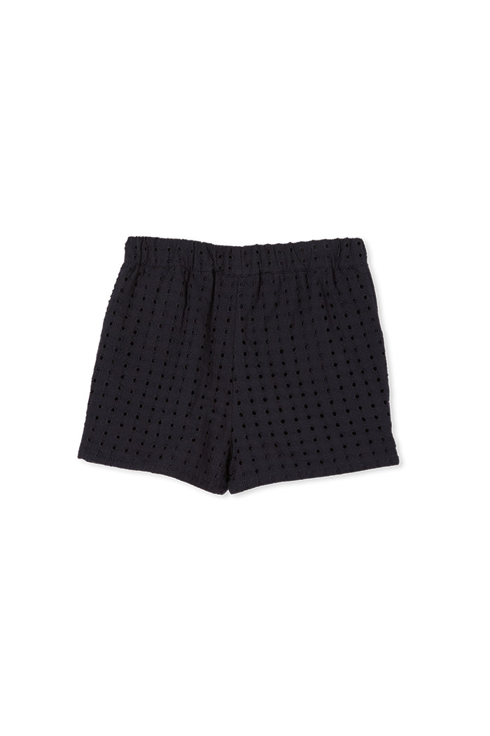 Milky Clothing Navy Broderie Short offers an easy wear option for dressing your child this season. The Navy Broderie Anglaise adds extra detail to the sweet short, paired back with a tee and you will have a stylish outfit ready to go.