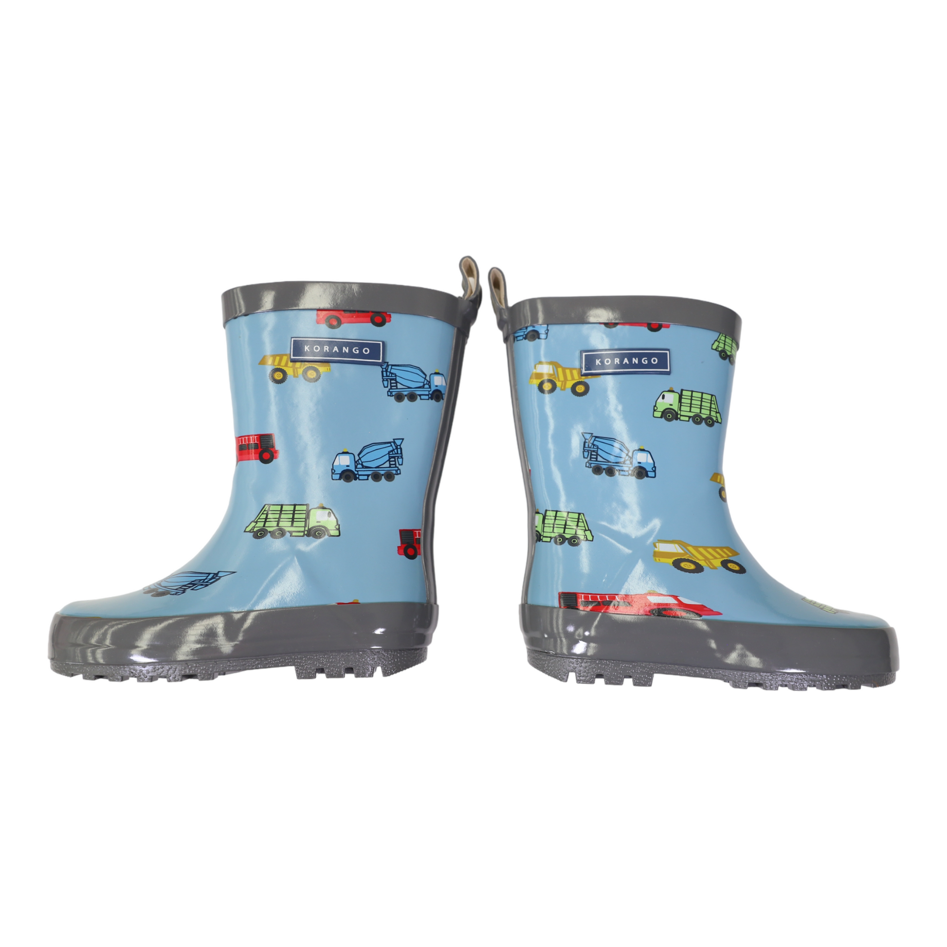 Korango's boys Airie Blue Truck Gumboot is a high quality and stylish boot that your little one will love! Bright and cheerful, it features assorted truck design with edging in a grey colour. It's perfect for outdoor adventures during wet weather, keeping small feet dry while they explore the great outdoors. The Korango branding badge on the side adds a unique touch to make this gumboot stand out from the rest. Parents, you can rest assured that your child’s feet are warm and protected without compromising on style!